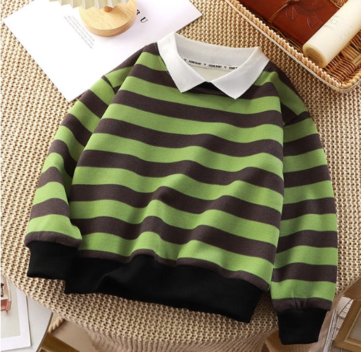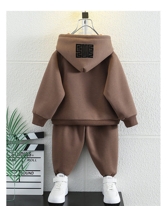 Boys' Hooded Sweater Set Autumn and Winter New Fashionable Children's Small and Medium Sized Children's Plush Boys' Plush and Handsome Winter Wear