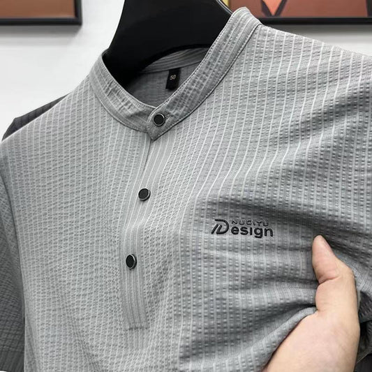 Selected high-end small stand-up collar short-sleeved T-shirt men's summer thin section anti-wrinkle non-ironing half-sleeved cool feeling ice silk solid color top