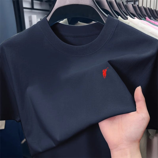 Summer high-end ice silk polo shirt short sleeved men's high-end casual slim fit seamless lapel t-shirt men's top thin