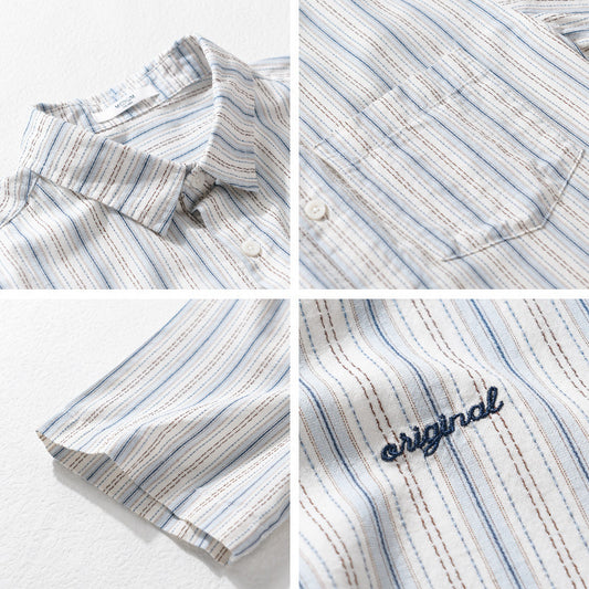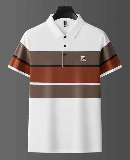 Summer casual Polo shirt turning striped short -sleeved T -shirt,