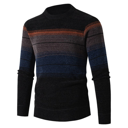 Winter men's chenille plush thick sweater men's striped middle-aged and young men's sweater trendy warm jacket