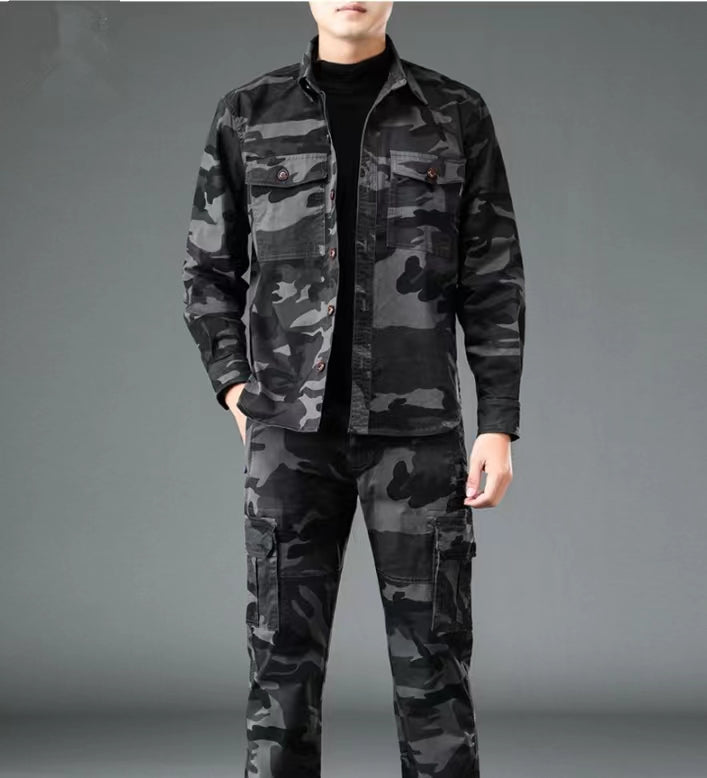Men's new long sleeved camouflage suit with spring and autumn thickness